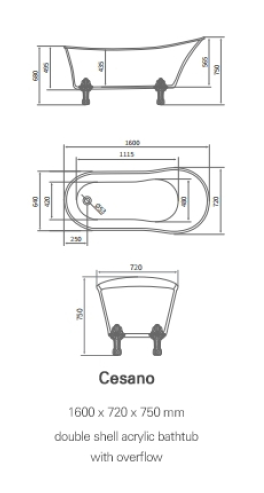 프리스탠딩 욕조 Cesano All white&black 1600x720x600 제품