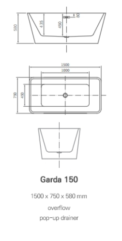 프리스탠딩 욕조 Garda-1500 1500x750x580