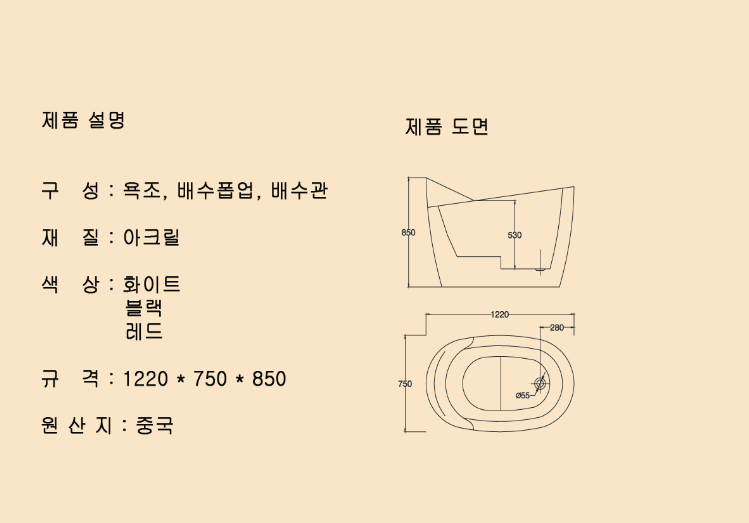 프리스탠딩 욕조 BF-022 1220X750X850 제품