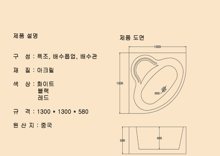 프리스탠딩 욕조 BF-023 1300X1300X580 제품
