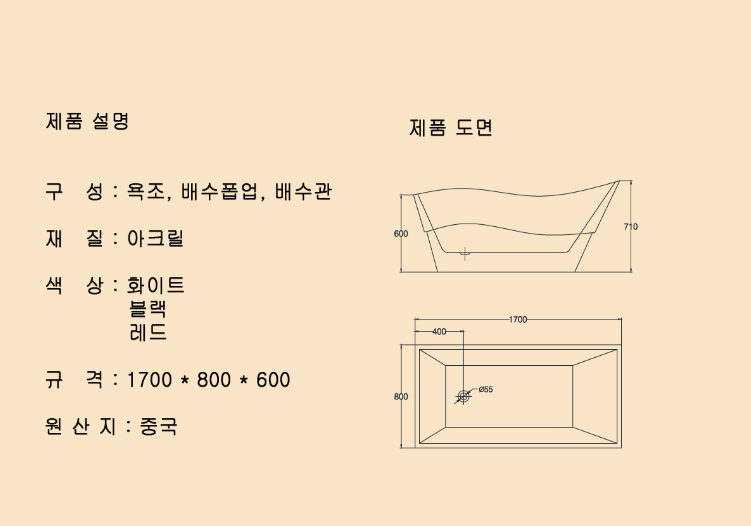 프리스탠딩 욕조 BF-087 1700X800X710 제품