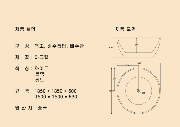 프리스탠딩 욕조 BF-121 1350X1350X600