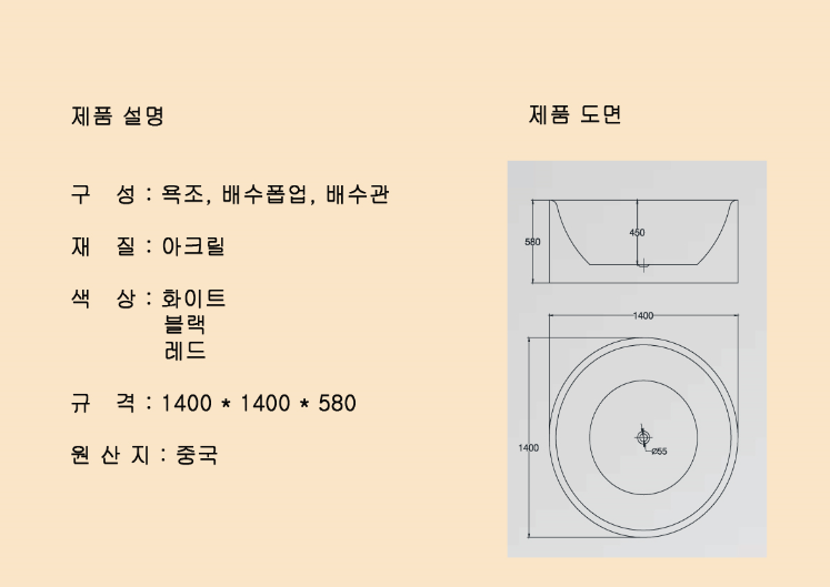 프리스탠딩 욕조 BF-201 1400X1400X580 제품
