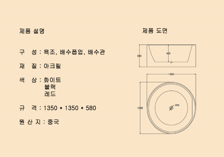 프리스탠딩 욕조 BF-203 1350X1350X580 제품