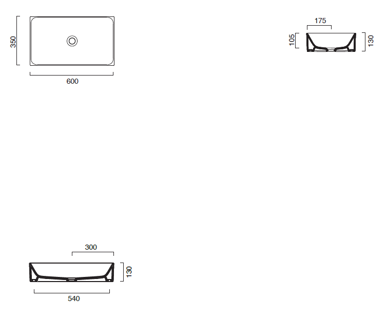 600x350x130mm 탑볼 세면기